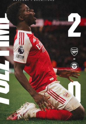 U 11. minuti Ben White je uputio centaršut, a Mikel Merino, noseći Arsenal dres Brentforda, glavom je poslao loptu u mrežu, dovodeći Arsenal u vodstvo. S prednošću od jednog gola, Arsenal je nastavio svoje neumoljive napade, ali sve ih je obranio Caoimhin Kelleher. U 90+1 minuti Mikel Merino je uputio precizno dodavanje, a Bukayo Saka je loptu u mrežu, osiguravši Arsenalu pobjedu od 2-0. S 33 boda, Arsenal vodi na ljestvici Premier lige, pet bodova ispred drugoplasiranog Manchester Cityja!